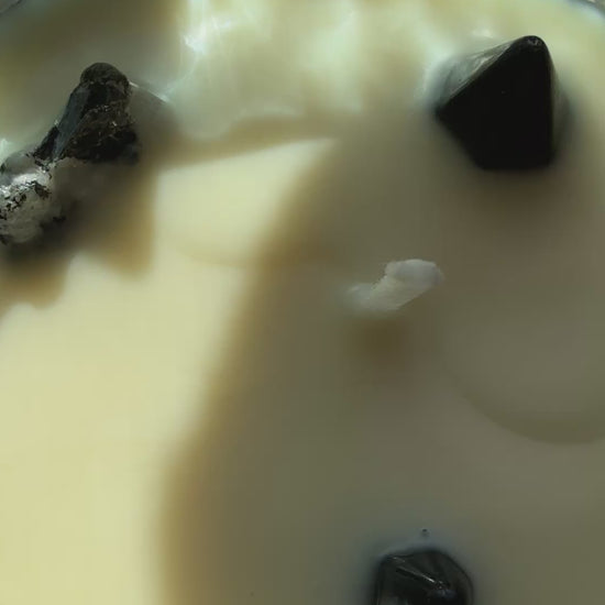 Crafted with pure, natural beeswax, this candle burns clean and toxin-free, filling your space with warm, tranquil energy. As the flame flickers, the crystals within work their magic, helping you release stress, protect your energy, and embrace clarity.
