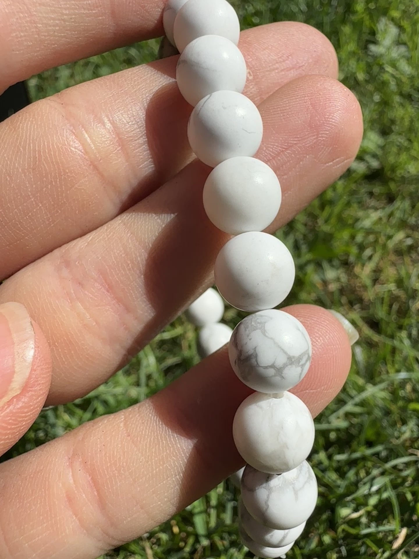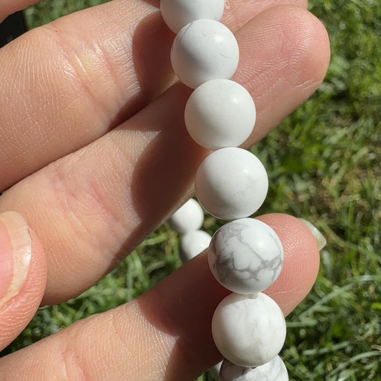 • Howlite Gemstone Bracelet (elastic cord, 8mm beads).