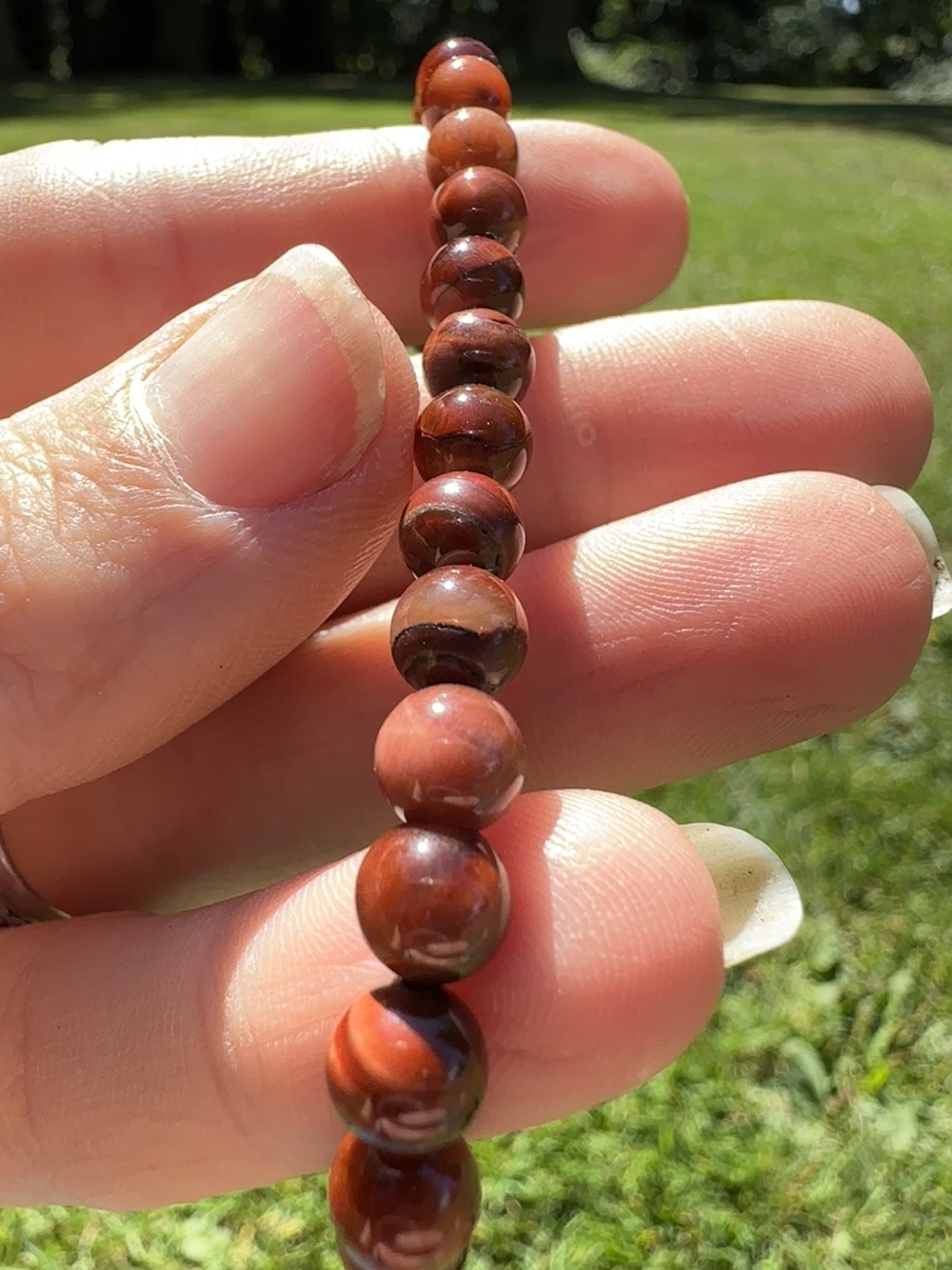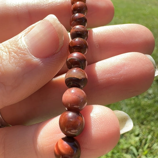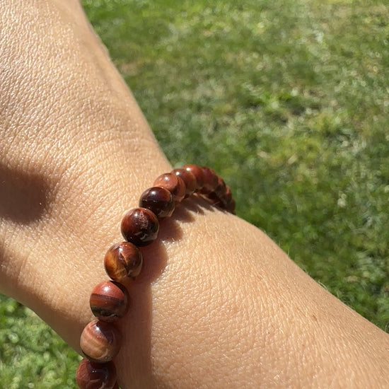 • Red Tiger’s Eye Gemstone Bracelet (elastic cord, 8mm beads).