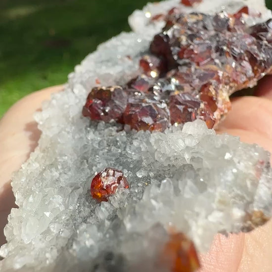 Garnet on Quartz Druzy is a vibrant and energizing crystal that blends the passionate energy of Garnet with the amplifying power of Quartz. Found in Brazil, India, and the USA, this stunning crystal formation symbolizes vitality, passion, and spiritual growth.