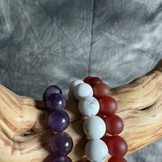 The Stacked Crystal Bundle features a powerful combination of three crystal bracelets, each designed to enhance different aspects of your energy and well-being. This set includes Amethyst, Carnelian, and Howlite bracelets, blending calming, motivational, and balancing properties in one harmonious collection.